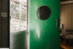 The old doors have round windows. You catch glimpses of trees and sky through them. It’s a strange feeling, like the house is still watching the world go by.