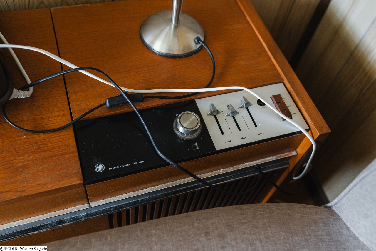 There’s a stereo console in the lounge. It’s flanked by a couple of speakers and topped with a lamp and a cushion. It’s the kind of setup that feels like someone used it daily. Not for show. Just part of the rhythm.
